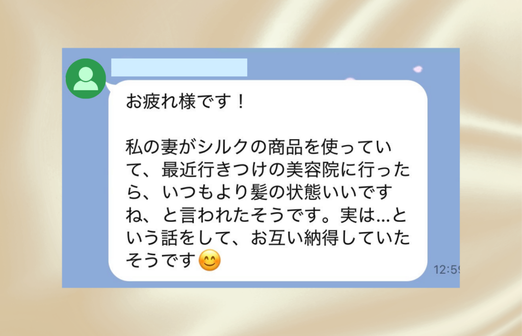 美容師さんも驚いた!妻へのプレゼントにLAYLASILKを贈ったら、行きつけのサロンで褒められました