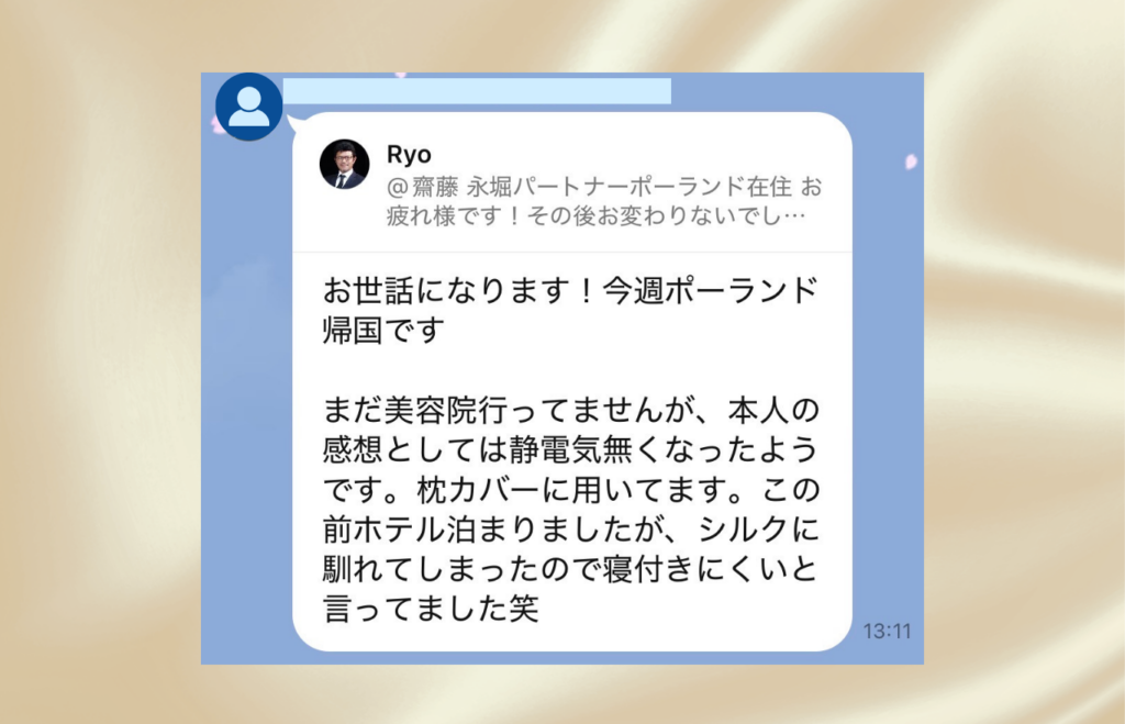 「もうシルクなしでは寝られない!?」ポーランド在住の奥様へ贈ったLAYLASILKの感想